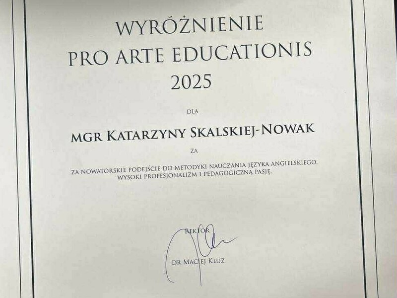 Pani mgr Katarzynie Skalskiej-Nowak serdecznie gratulujemy tego zaszczytnego wyróżnienia i życzymy dalszych sukcesów zawodowych oraz wielu kolejnych osiągnięć. Jesteśmy dumni, że tak znakomita dydaktyczka współtworzy nasz zespół.