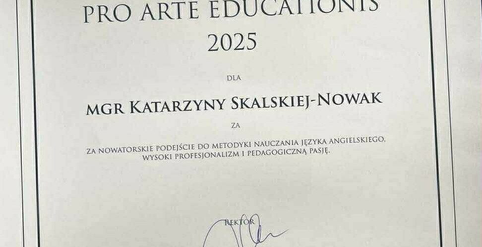 8 października 2025 r., podczas inauguracji nowego roku akademickiego, odbyło się uroczyste wręczenie nagród Pro Arte Educationis dla najlepszego dydaktyka. Jedną z czworga nagrodzonych osób była lektorka Centrum Języków Obcych i Języka Polskiego UAFM, mgr Katarzyna Skalska-Nowak. Zaangażowanie, pasja oraz oddanie pani Katarzyny zostały docenione przez studentów i zauważone przez Kapitułę konkursu.