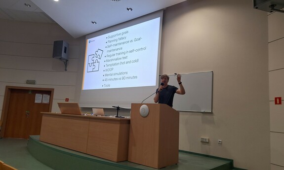 Wykład skierowany był do wszystkich studentów zainteresowanych rozwojem osobistym, skutecznym osiąganiem celów oraz budowaniem wytrwałości – cechy, która okazuje się kluczowa zarówno w nauce, jak i w życiu codziennym.